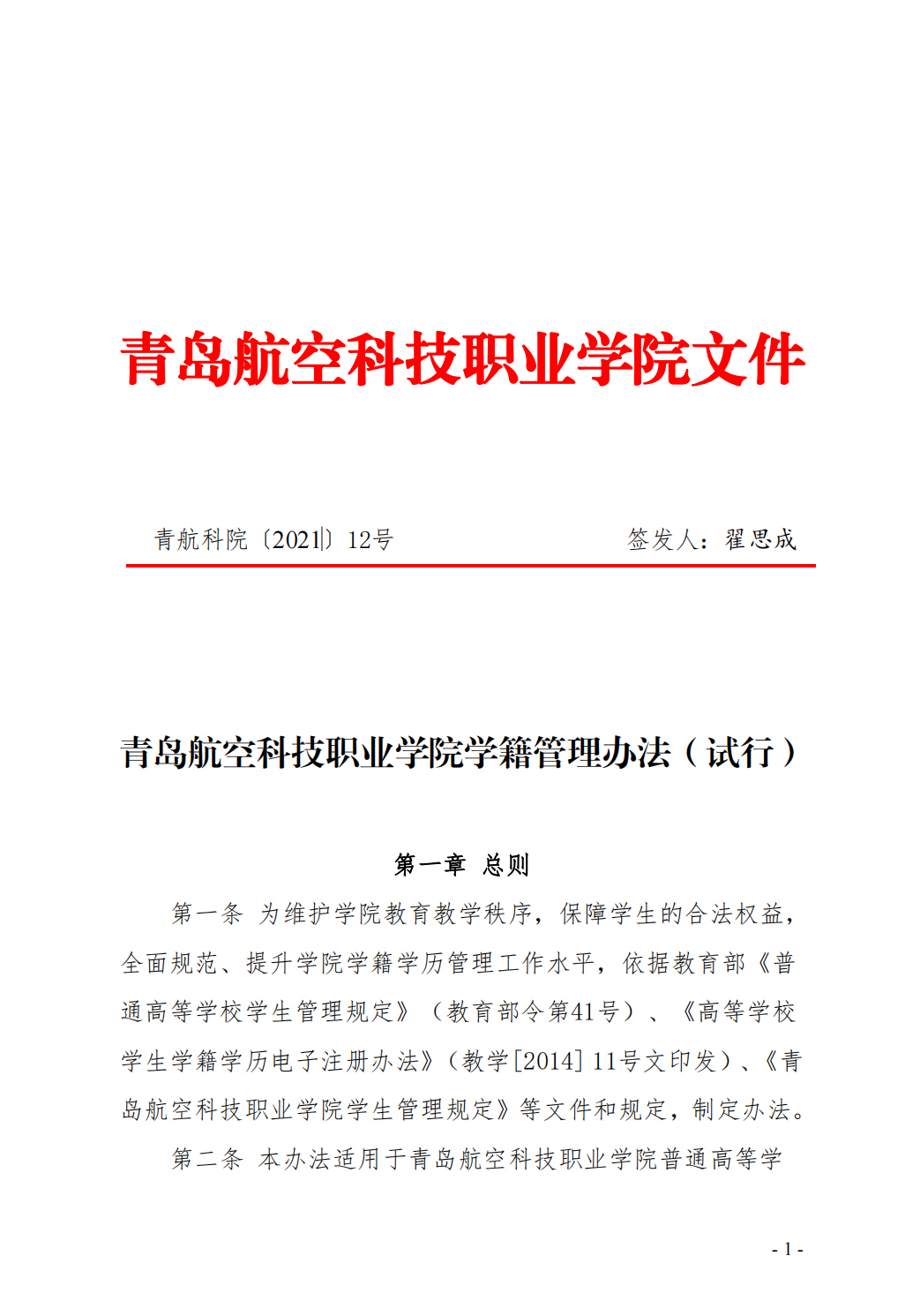 关于印发《青岛航空科技职业 学院考试管理办法(试行)》的通知