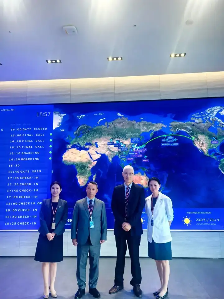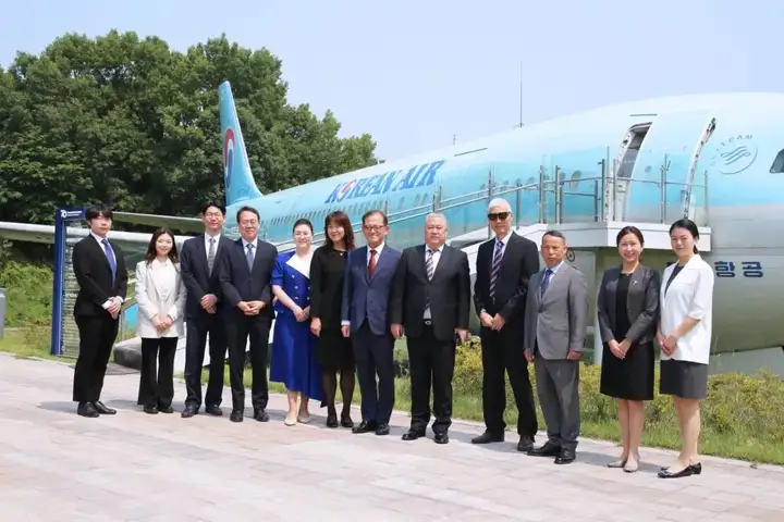 签约仪式结束后,泛美教育集团代表团一行前往参观了与韩国航空大学同属一个财团的大韩航空,近距离感受了其总部先进的核心运营环境,深入了解了世界级航空企业的管理理念及企业文化等。在参观中,双方围绕航空产业实践与教育融合模式进行深入研讨,探索产学研协同创新的可行路径,尤其探讨了共建航空实训基地、探索定制化人才培养项目、开发基于真实岗位需求的实践性课程体系等产教融合方向,为未来合作注入行业前沿动能。
