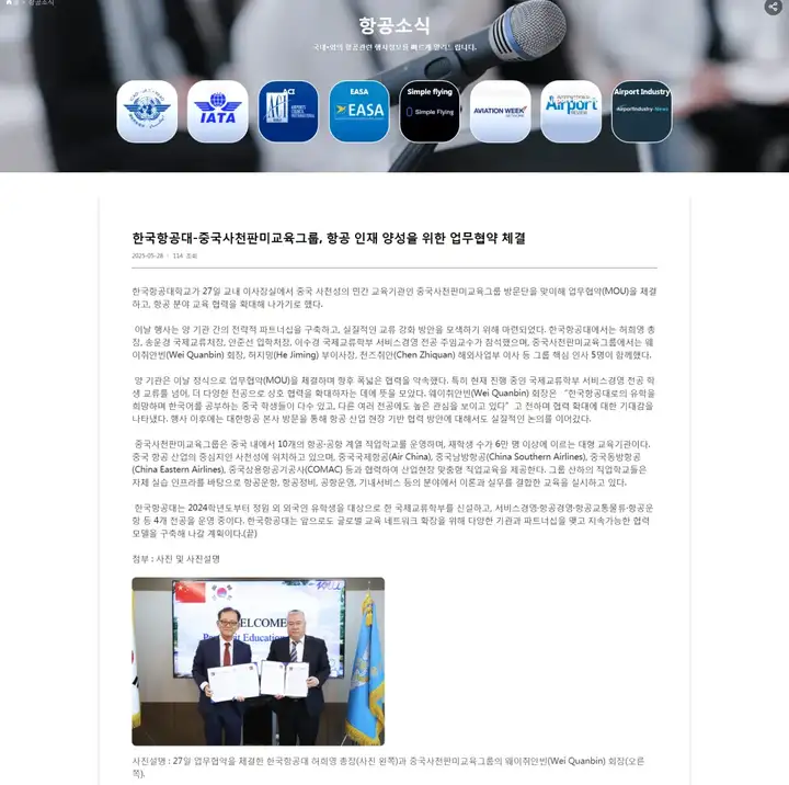 据协议内容,双方一致决定进一步扩大并深化在航空领域的教育合作,除持续推进现有的国际交流学部服务经营专业学生交流项目外,将整合双方优势教育资源,延伸合作范围至航空服务、航空运营、无人机等多个专业领域,构建可持续发展的合作模式,共同探索更深入的合作路径、更广阔的合作空间,携手共育国际化人才。