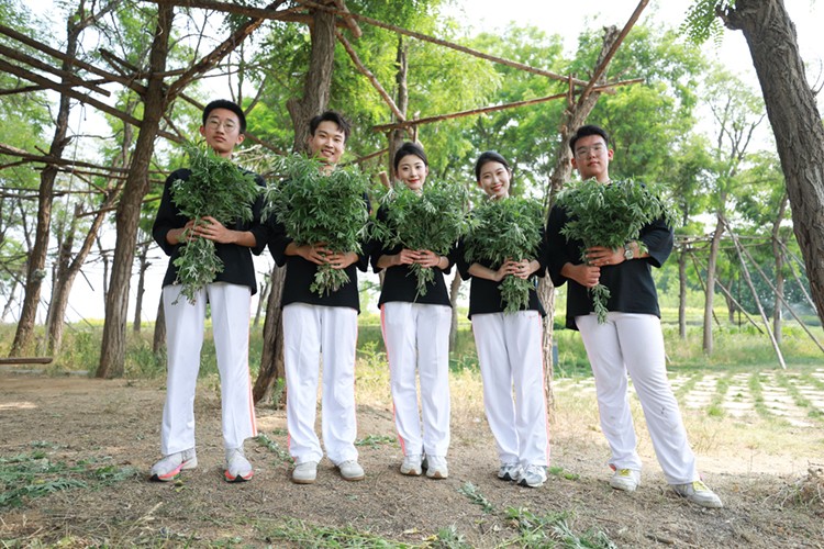 民谚说:“门挂艾旗驱百病,户悬蒲剑斩千邪”。从古至今,我国民众素有在端午节悬菖蒲、挂艾叶的习俗。同学们将割好的菖蒲、艾叶扎成捆,寻到一处阴凉的槐花林地,沐浴着大自然吹来的清风,手作艾草花束在欢声笑语中开启。