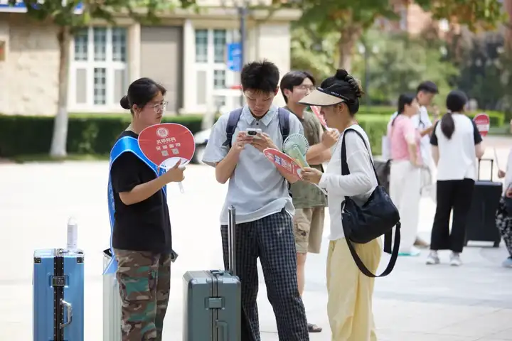 高温天里,路口的指引牌、学院的志愿者、点位上的冰镇饮品、校园内接驳的专车,学校工作人员和志愿者们,协助搬运行李、指引路线、解答疑惑,用十足的热情与耐心让入学手续变得简单便捷。