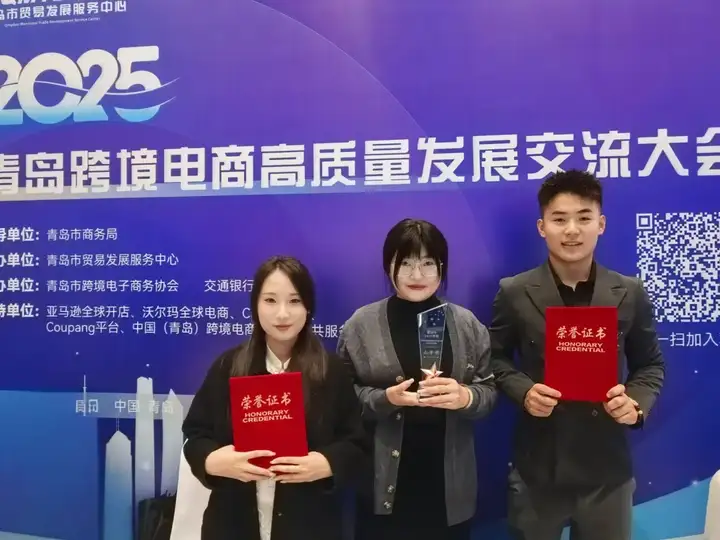 近日,青岛市2025年度跨境电商创新创业职业技能大赛圆满落幕。经过初赛、排位赛和终极决赛三个阶段的激烈角逐,由我校毛依凡、单琳浩同学组成的参赛队脱颖而出,荣获三等奖,秦佳老师荣获“优秀指导老师”称号,我校同时获评“优秀团体奖”。