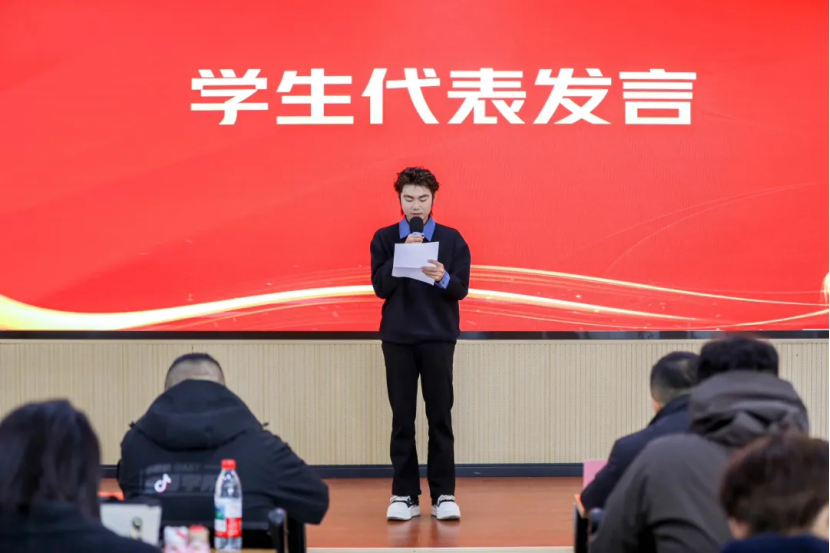 学生代表依次上台发言,分享了自己在直播学习与实践中的成长故事、奋斗心得,从初入赛道的懵懂摸索到技能精进的突破成长,他们的真诚讲述传递出榜样的力量,也为在场学子树立了奋进标杆。