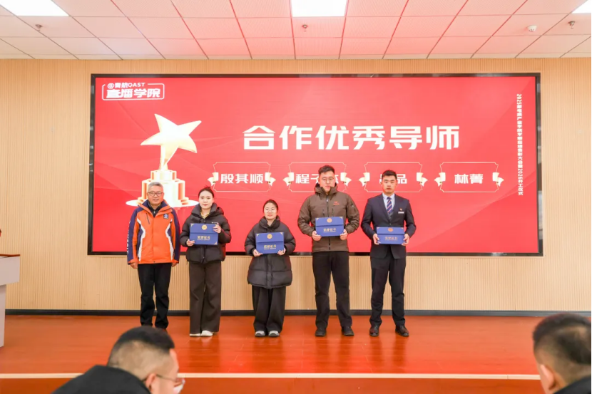 大会同时对优秀导师予以表彰,罗斌副校长为秦佳、孙旭老师颁发学期优秀导师奖;吴颖军副校长为殷其顺、程子杰、吕品、林菁老师颁发合作优秀导师奖,感谢各位导师深耕校企协同育人一线,将行业经验与专业技能融入教学,为学子搭建从校园到职场的桥梁。
