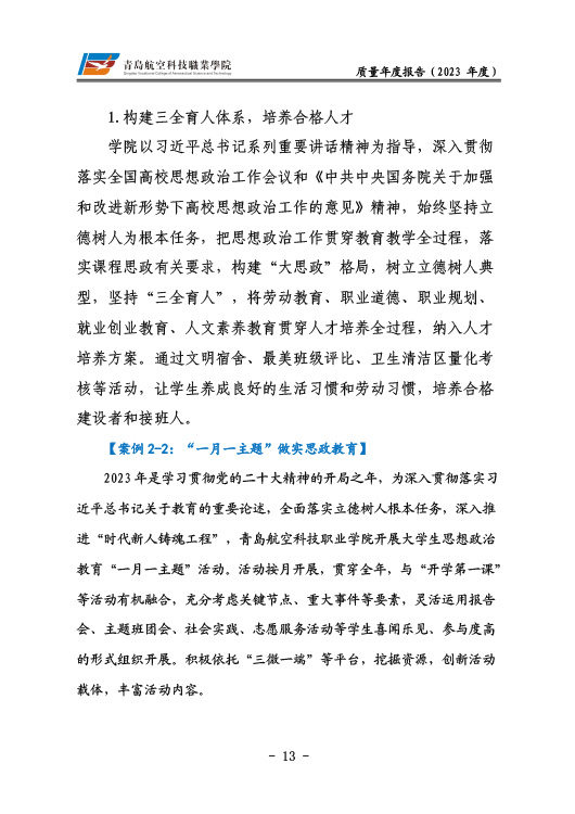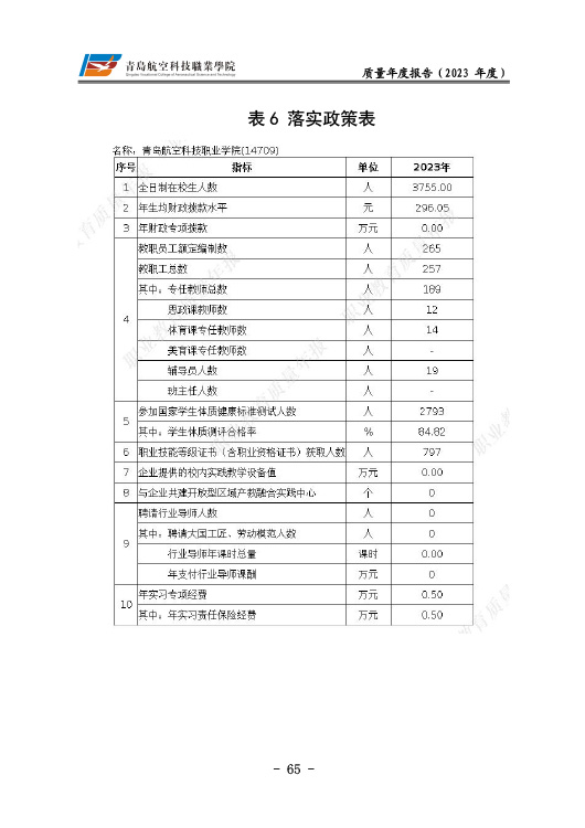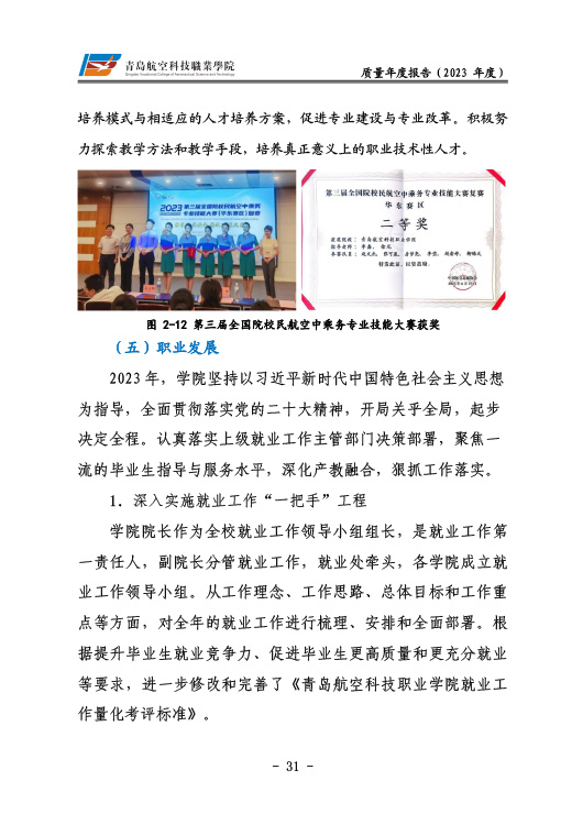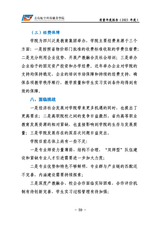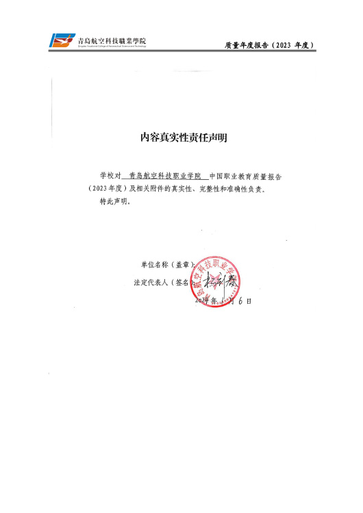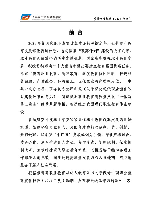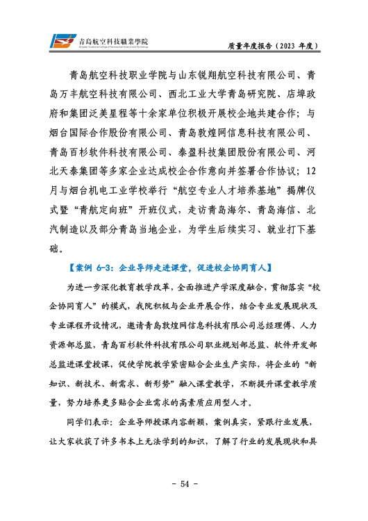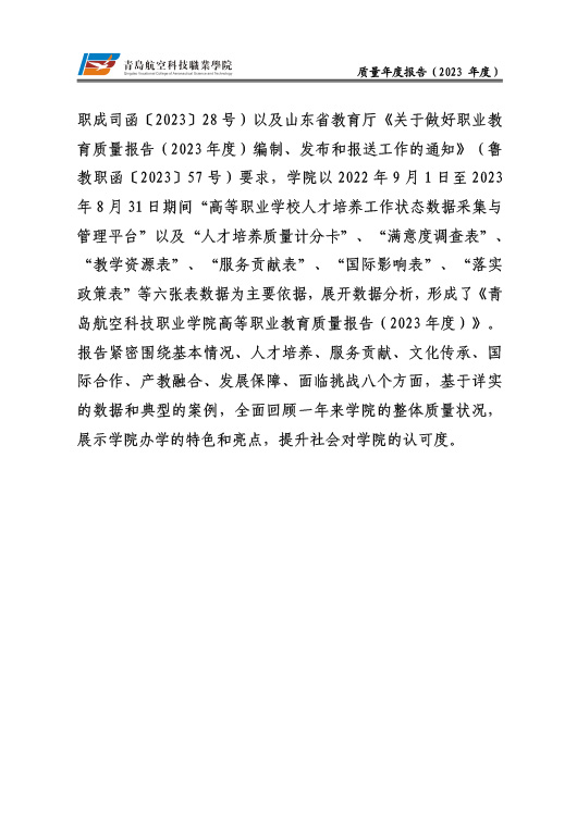 重庆泛美星程航空服务公司参与高等职业教育人才培养工作年度报告(2023年度)