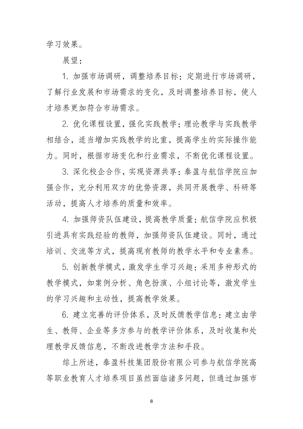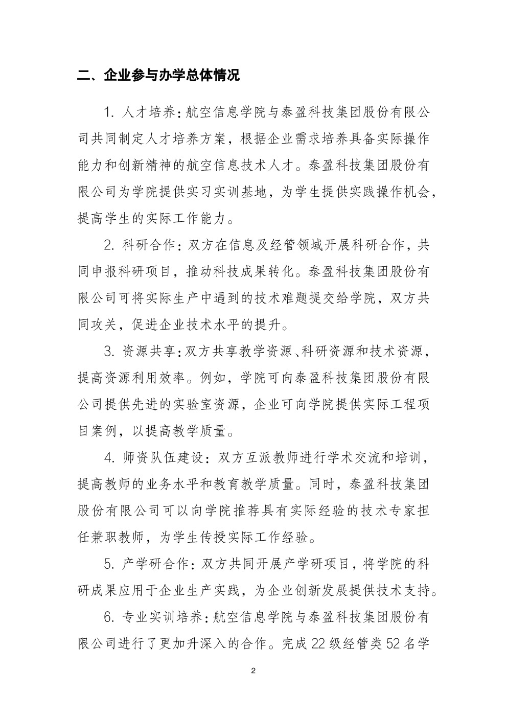 泰盈科技集团股份有限公司参与高等职业教育人才培养年度报告(2023年度)