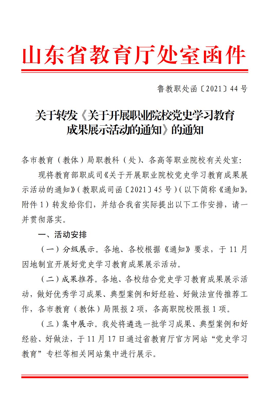 关于转发《关于开展职业院校党史学习教育 成果展示活动的通知》的通知