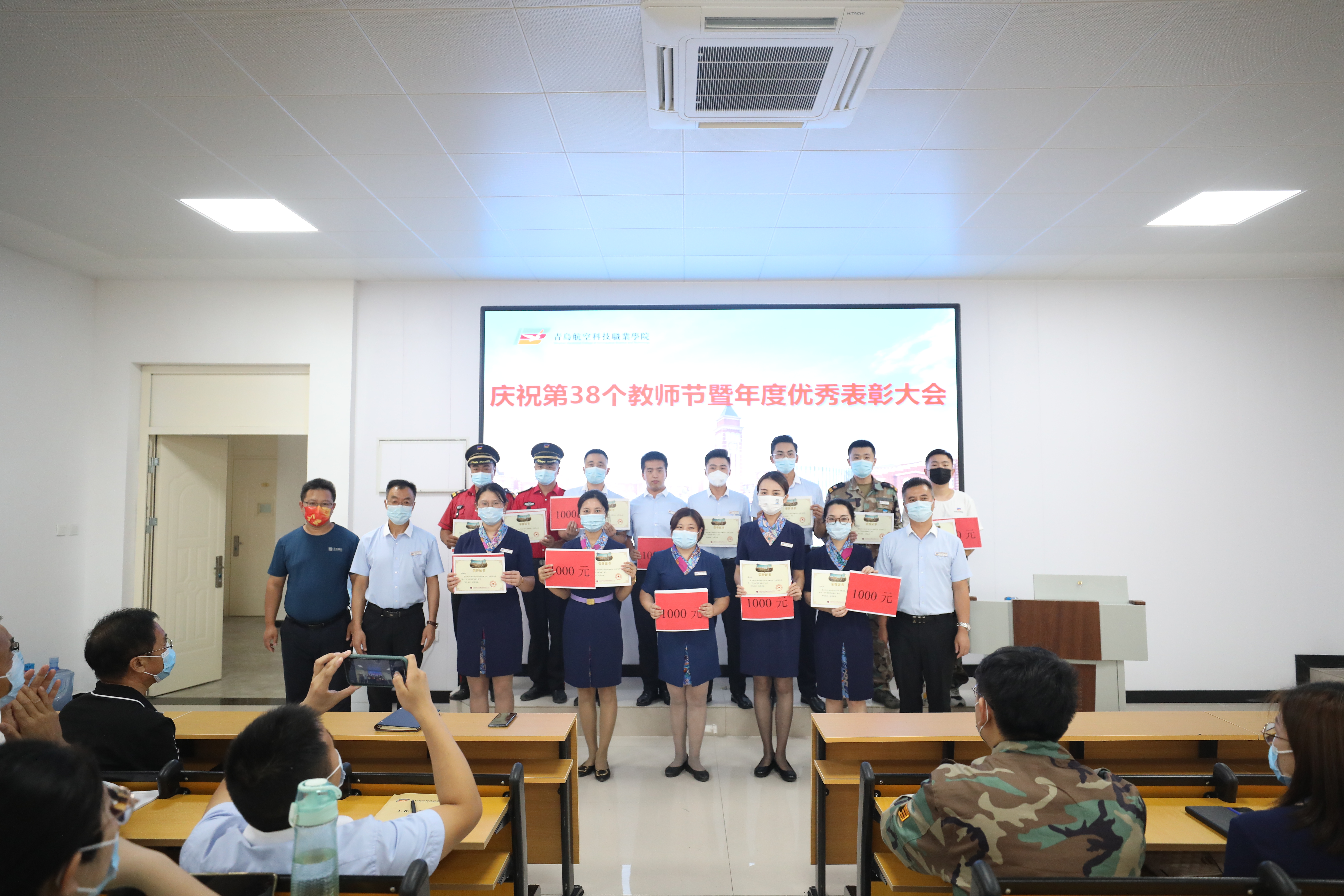 大会伊始,首先对2021-2022学年度工作表现突出的先进工作者进行了表彰,青岛航院办公室主任邹航宣读“学年度优秀教师”、“学年度优秀参谋长”、“学年度优秀员工”、“学年度优秀教育工作者”获奖名单。伴随着全场教师热烈的掌声,学校领导为获奖者颁奖。