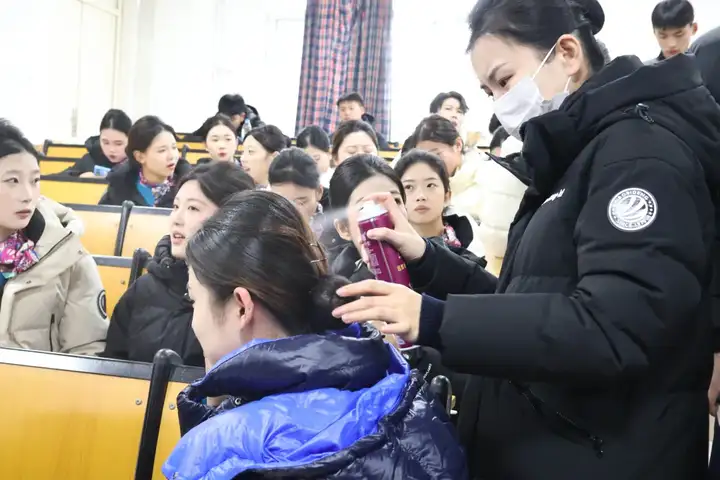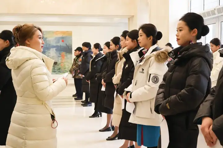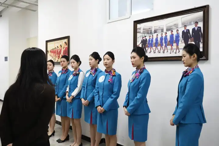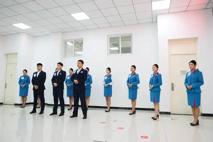 海选结束后,通过身高筛选的同学进入初试环节。同学们身着整洁得体的职业装,以精致的妆容、挺拔的姿态有序列队,一举一动间尽显 “高度职业化的民航员工” 的雏形,充分展现了青岛航院学子扎实的职业素养与良好的精神风貌,给面试官留下美好印象。