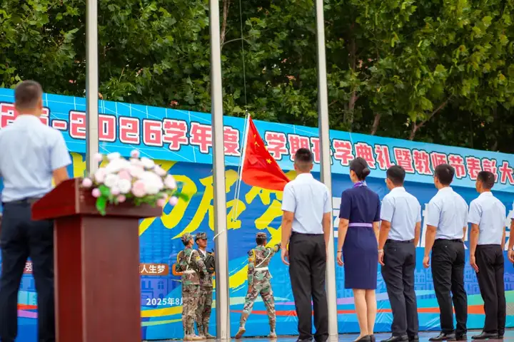乘风而上,筑梦未来。开学典礼最后,院校师生相对而立,互道“你好”。