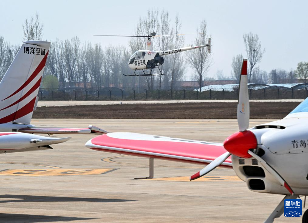 青岛泛美通用航空有限公司学员在学习直升机驾驶(4月2日摄)