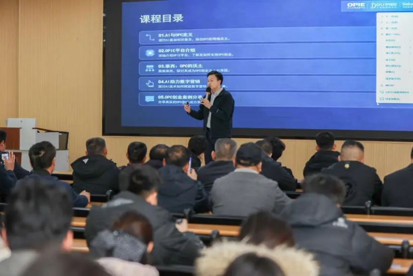 3月18日在我校218阶梯教室举办的OPC人工智能专题宣讲会,在店埠镇政府的全程指导与支持下顺利开展,由柠檬豆平台协同组织。柠檬豆平台杨尚伟先生进行了主旨演讲,系统解读了人工智能与OPC的核心概念、创业优势及实践案例,深入阐释了“AI+微团队” OPC新模式的产业价值,全面展示了人工智能技术应用的广阔前景,为青年学子把握职业发展新机遇指明了方向。